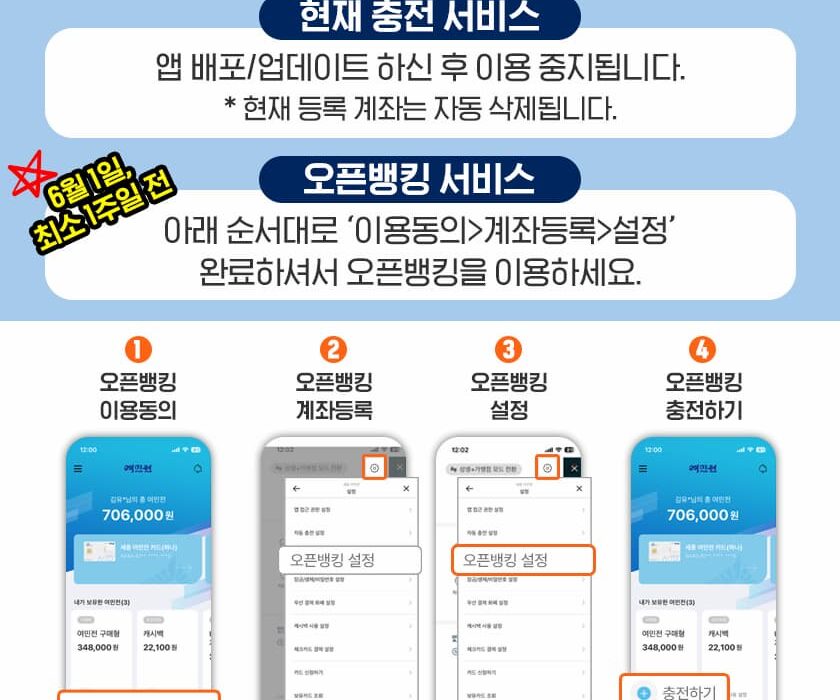 6월 1일부터 여민전 충전방식 오픈뱅킹으로 전환