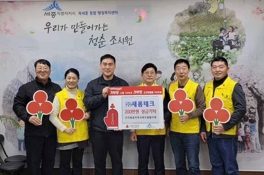 유진근 ㈜새롬테크 대표는 “회사가 전의면에 위치했지만 북부 생활권과 공동체로 이어진 조치원읍 이웃을 위해 기부를 결심했다”며 “지역 간 경계를 넘어 서로 돕는 따뜻한 나눔 문화가 확산하길 바라고, 기업 차원의 사회공헌 활동을 지속적으로 이어가겠다”고 말했다.